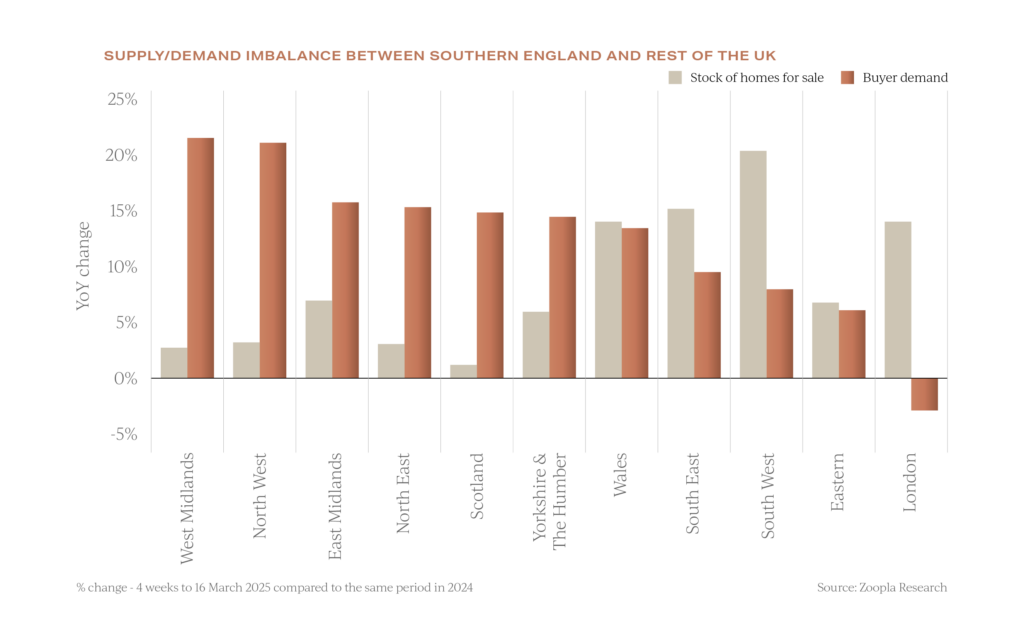 What is clear, however, is that the market is becoming increasingly divided. According to the latest HomeTrack data, supply is now outpacing demand across much of southern England, while in areas such as the Midlands, the North West, and Scotland, demand continues to exceed available stock.