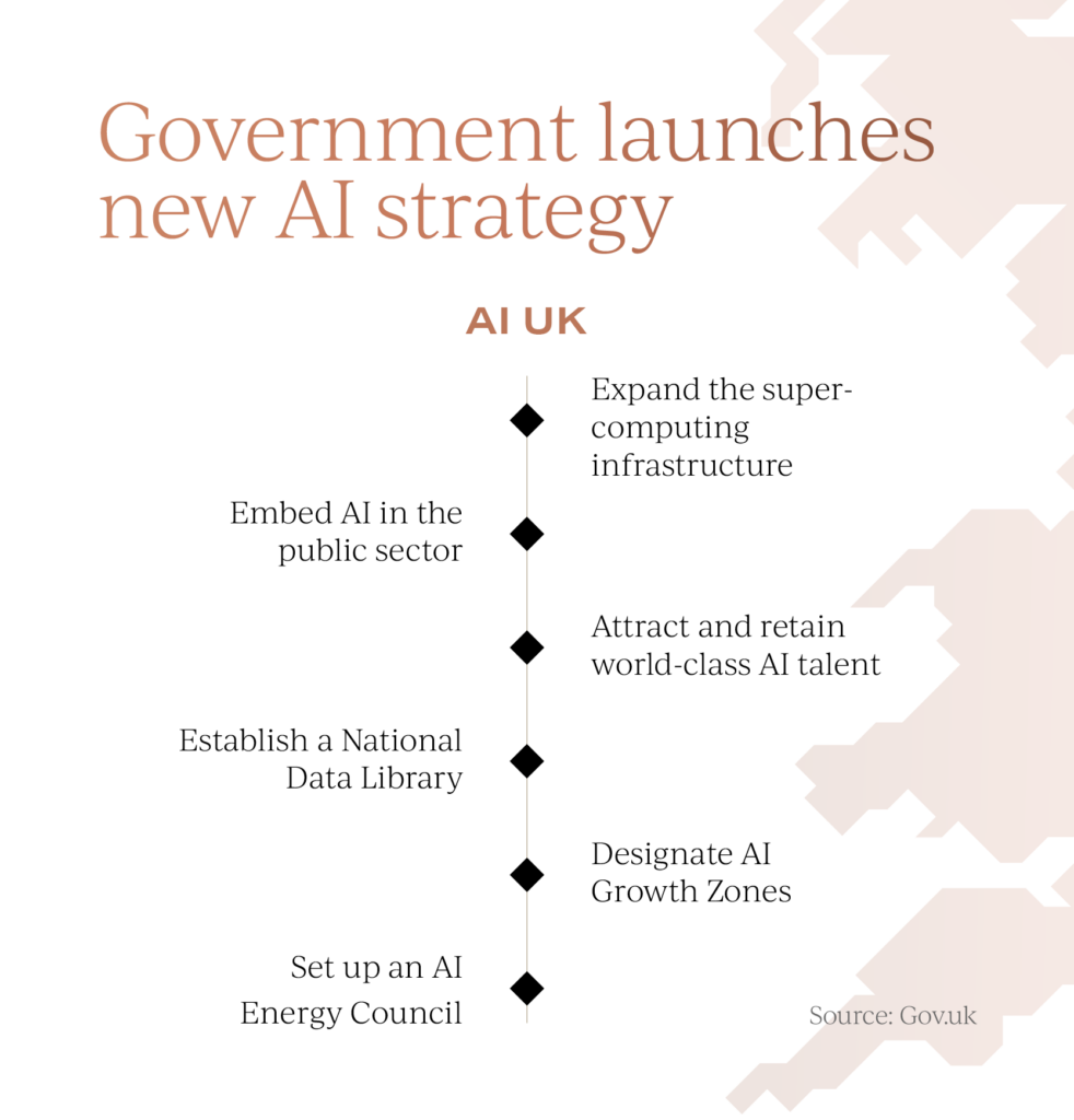 Further strengthening the UK’s tech dominance, the Prime Minister’s AI Opportunities Action Plan aims to accelerate AI adoption, with the first AI Growth Zone (AIGZ) designated in Culham, Oxfordshire. Meanwhile, powerful AI supercomputers in Bristol and Cambridge will support AI innovation from spring 2025.