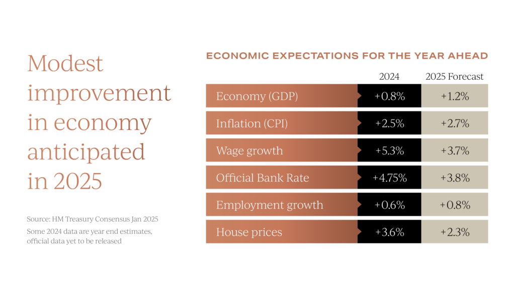 For the UK property market, this economic backdrop suggests a more stable and active year ahead. Transaction volumes should remain solid, while house price growth is expected to track a similar pace to 2024, reflecting a gradually improving lending environment and steady demand.