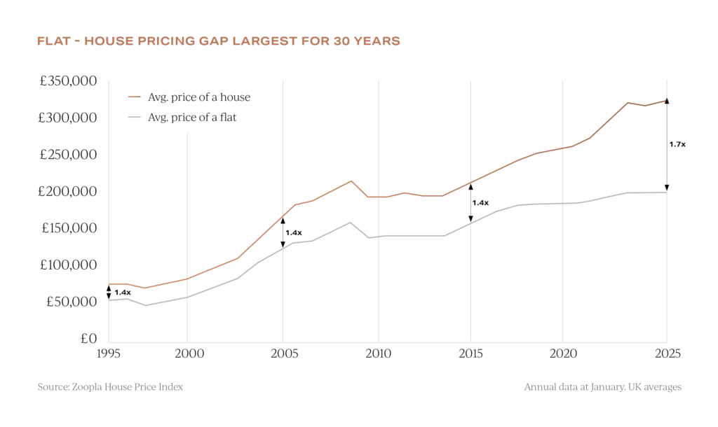 Newly published research from Hometrack highlights a stark contrast in buyer demand between houses and flats, with sales activity diverging significantly in early 2025.