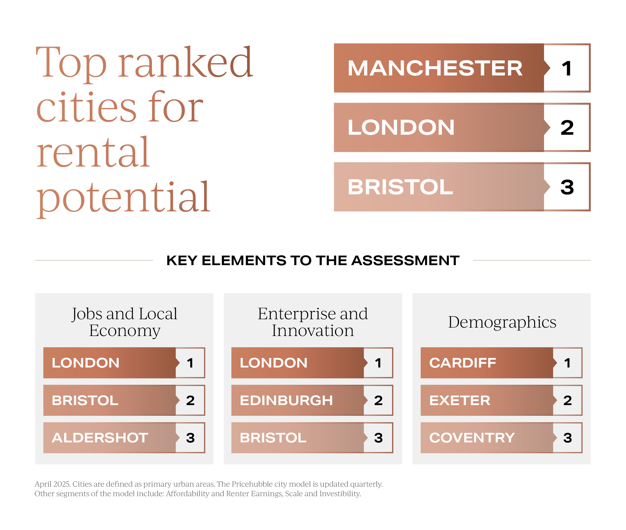 Longer term investment potential for London and southern cities remains strong however. Whilst Manchester ranked first place, London and Bristol are the next top-ranking places for rental potential according to the latest City Ranking Model from PriceHubble.